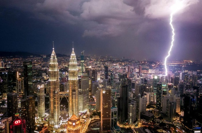 Petir membelah Kota Kuala Lumpur. Foto: Petedemarco via LoveMyFamilyMag.com