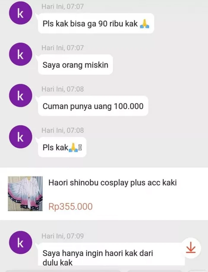 Sampai sekarang katanya masih minta nego. Foto: Twitter/txtdarionlshop