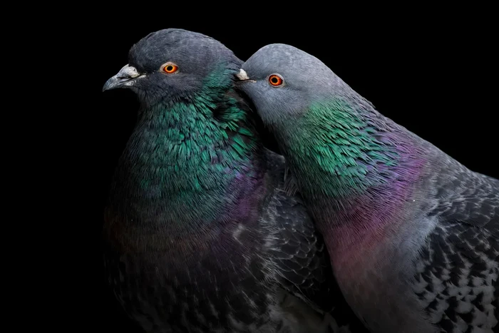 Foto sepasang burung merpati atau rock pigeon jepretan Liron Gertsman ini dinobatkan sebagai juara utama Audubon Photography Awards 2023. Foto: Liron Gertsman/Audubon Photography Awards 2023