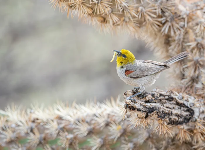 Linda Scher memotret burung Verdin yang sedang membangun sarangnya. Foto ini memenangkan kategori Plants for Birds Awards. Foto: Linda Scher/Audubon Photography Awards 2023