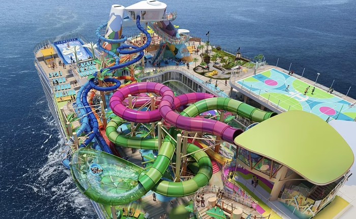 Icon of The Seas menawarkan banyak hiburan. Di antaranya tujuh kolam renang yang membutuhkan 40 ribu galon air, dan waterpark masif dengan 6 seluncuran air. Foto: Royal Carribean