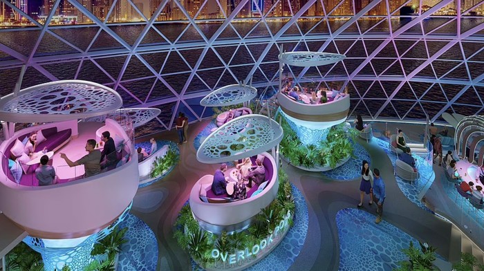 Kapal ini memiliki kubah yang terdiri dari 673 panel kaca dan 712 panel aluminium di atas kapal yang menampilkan pemandangan laut yang indah. Foto: Royal Carribean