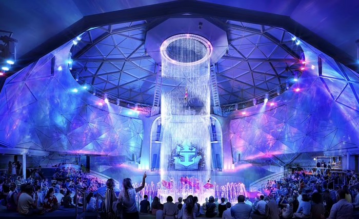 Kapal pesiar ini juga memiliki 40 bar dan restoran, air terjun dalam ruangan setinggi 16 meter, lapangan golf mini, dan gelanggang es. Foto: Royal Carribean