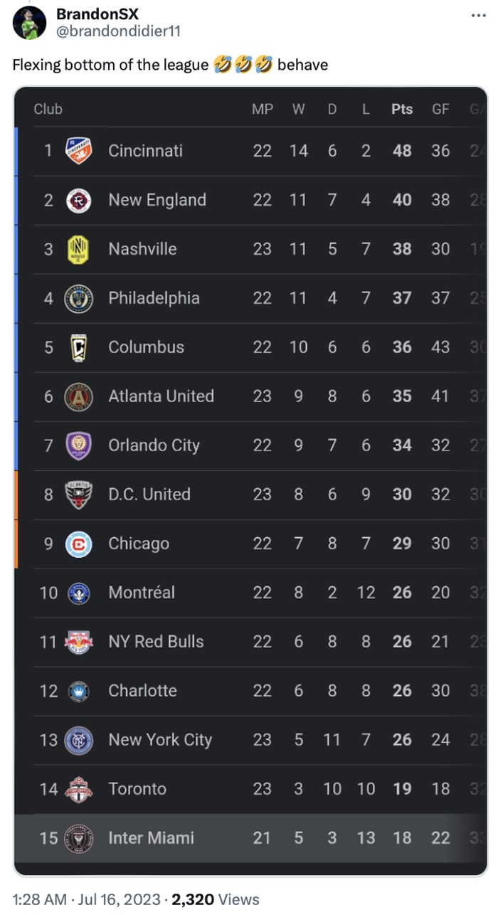 Saat ini, Inter Miami menempati peringkat ke-15. Waduh! Foto: Twitter