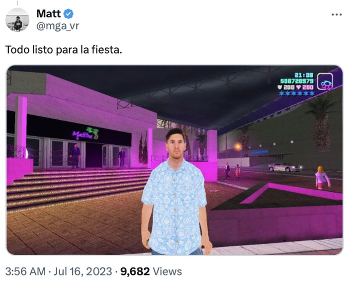 Pesta penyambutan Messi ala GTA. Foto: Twitter