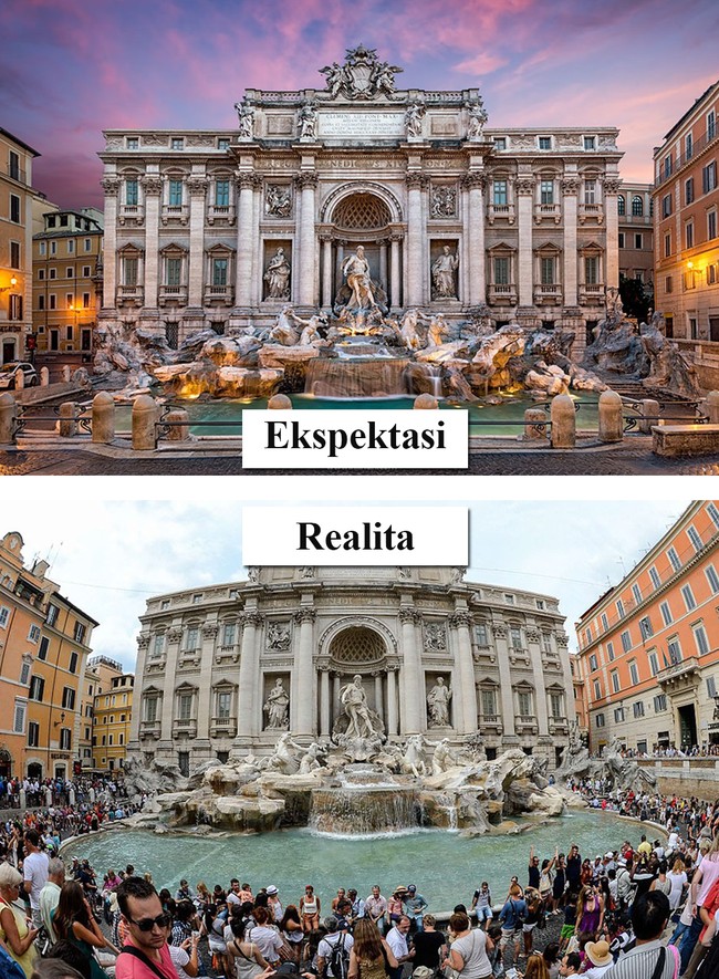 Salah satu contohnya seperti foto ini. Air Mancur Trevi tampak lebih ramai dibandingkan ekspektasinya. Foto: (Dok. Bored Panda).