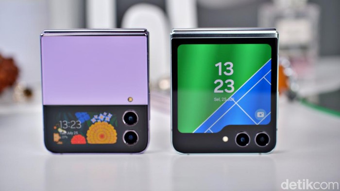 Galaxy Z Flip 4 (kiri) dan Galaxy Z Flip 5 (kanan). Foto: Adi Fida Rahman/detikINET
