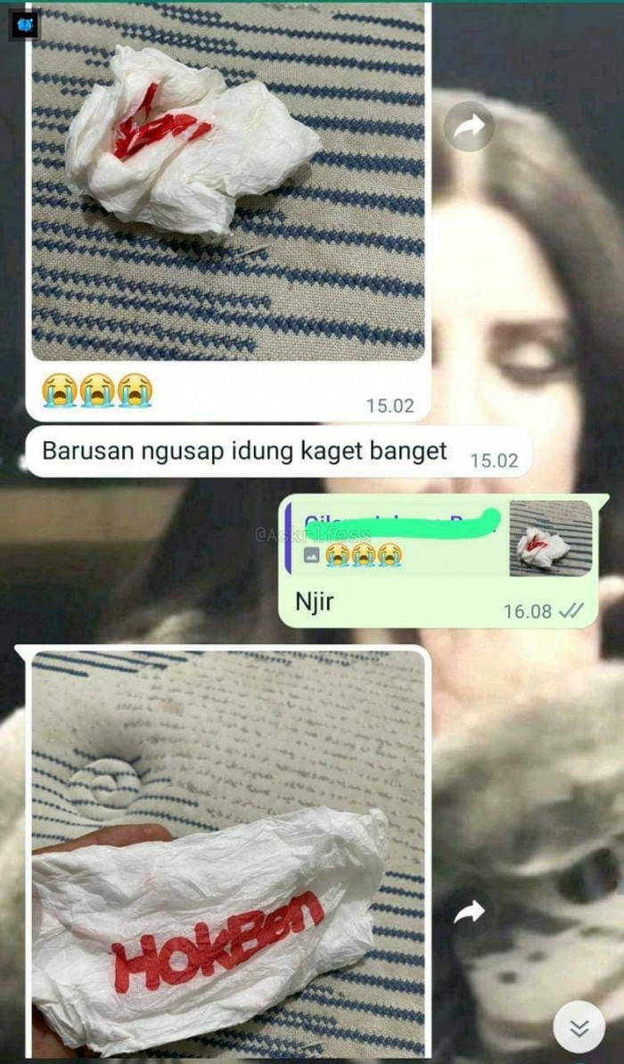 Kirain mimisan, ternyata tisu Hokben. Foto: Twitter/noncontextreceh