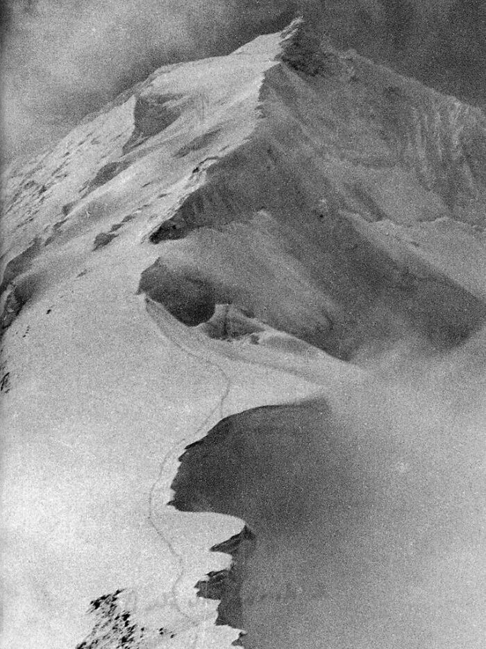 Ini adalah foto yang diambil Kurt Diemberger setelah rekannya, pendaki gunung terkenal Hermann Buhl, jatuh ke jurang di gunung Himalaya. Buhl sedang berjalan di belakang Diemberger dan sesaat meninggalkan jalan setapak. Setelah itu dia jatuh ke dalam es. Foto: Bored Panda