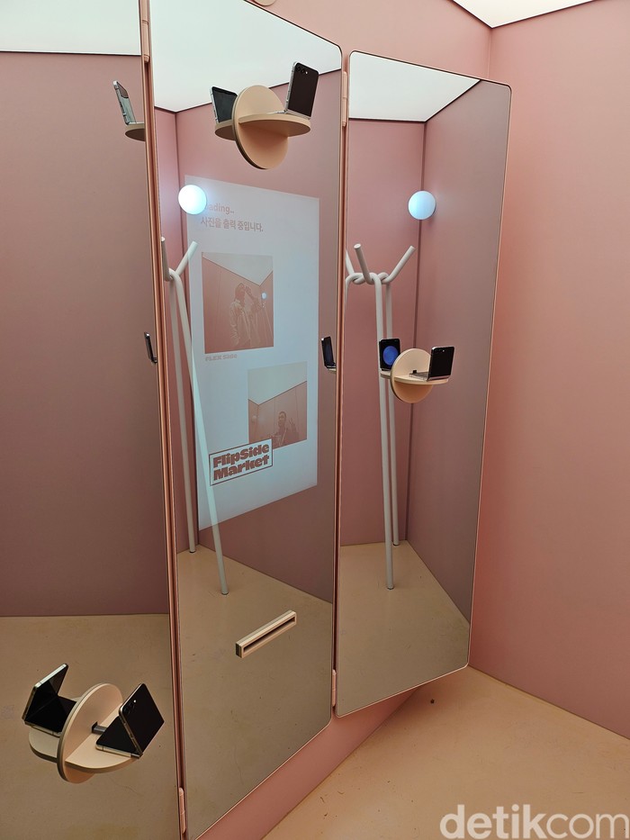 Pengunjung toko pop-up Samsung juga bisa mengambil foto di beberapa photobooth unik yang disediakan. Menariknya, semua foto di photobooth ini diambil menggunakan kamera Galaxy Z Flip 5. Foto: Virgina Maulita Putri/detikINET
