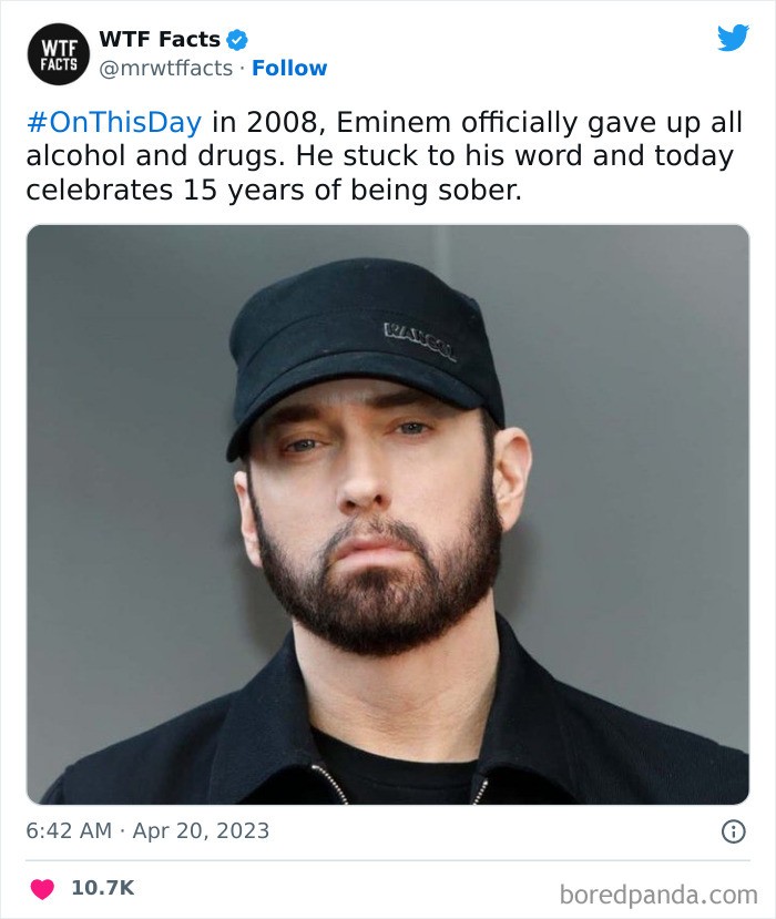 Eminem berhasil lepas dari narkoba dan minuman beralkohol selama belasan tahun. Foto: mrwtffacts via Bored Panda