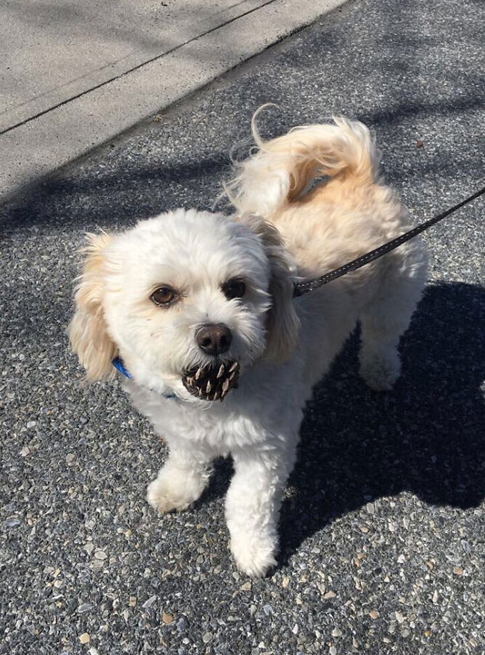 Gegara memakan biji pinus bikin anjing imut ini terlihat galak. Foto: Boredpanda