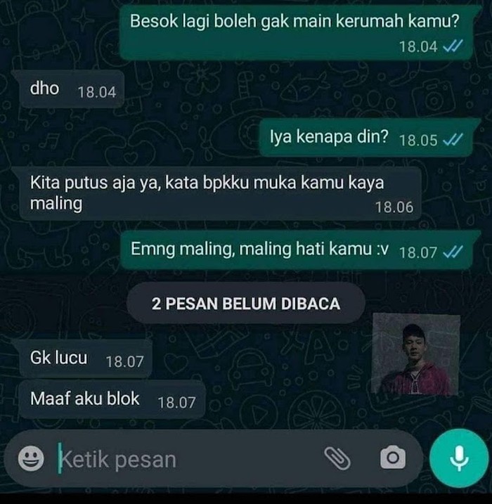 Ku tidak menyangka, yang balas chat malah pacarnya. Foto: via lucu.me