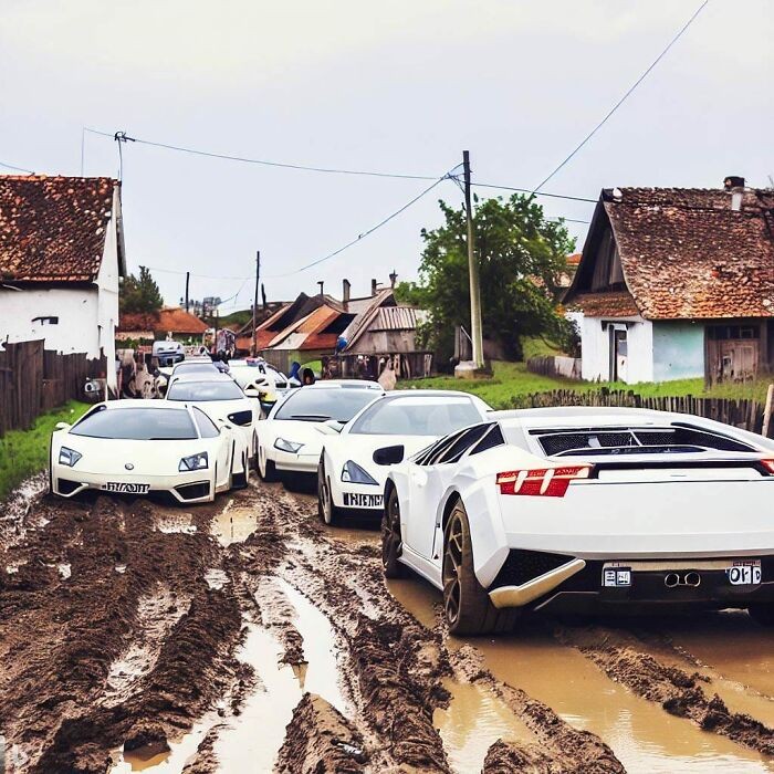 Mobil mewa melintasi jalanan berlumpur di pedesaan. Foto: facebook/cursedaiwtf