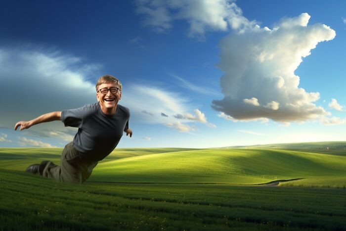 Bill Gates lagi bersenang-senang di wallpaper Windows XP Foto: facebook/cursedaiwtf