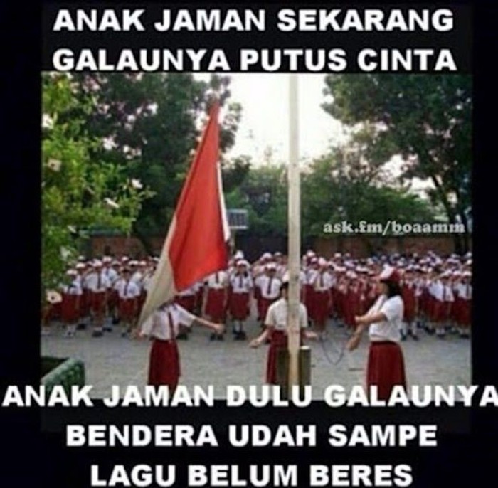 Rasanya ada yang kurang ketika bendera udah duluan naik padahal lagu Indonesia Raya belum selesai dinyanyikan. Foto: Instagram/boaamm