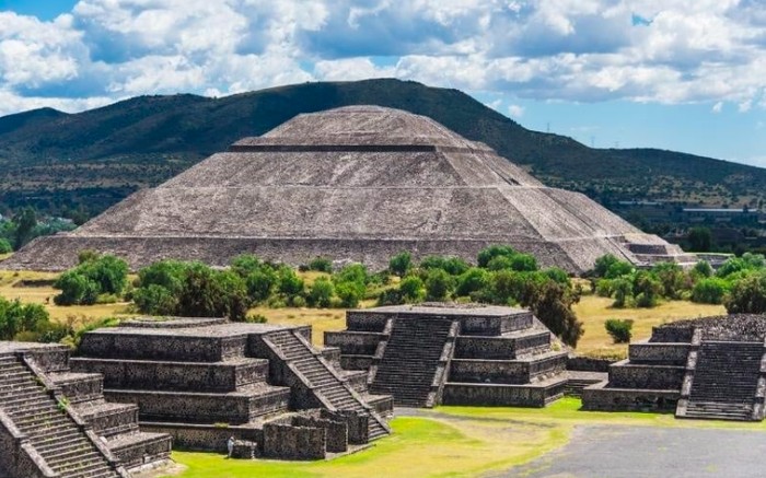 Piramida Matahari, Meksiko. Piramida lain yang terkenal di luar Mesir berasal dari kota Teotihuacan di Mesoamerika kuno. Tidak ada nama yang tercatat sebelumnya, tetapi bangunan ini disebut Piramida Matahari oleh suku Aztec ketika mereka menetap di kota yang ditinggalkan itu. Foto: via Tripzilla