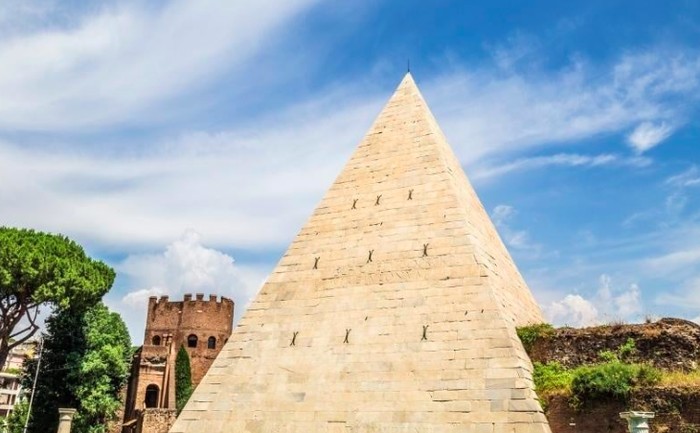 Piramida Gaius Cestius, Italia. Piramida Gaius Cestius dibangun untuk keluarga bernama Gaius Cestius. Dia adalah pemuka agama yang produktif di zaman Roma Kuno dan sangat dihormati dengan pendirian piramida ini sebagai makamnya. Foto: via Tripzilla