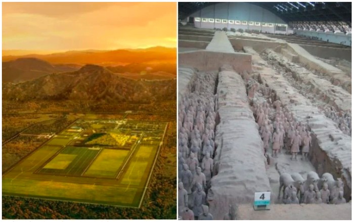 Mausoleum, Kaisar Qin Pertama, China. Piramida ini dibangun selama periode terakhir Zaman Batu. Meskipun ada beberapa piramida yang tersebar di sekitar Provinsi Shaanxi, yang paling terkenal adalah piramida Mausoleum Kaisar Qin Pertama. Tempat ini paling terkenal sebagai situs sebagian Tentara Terakota. Foto: via Tripzilla