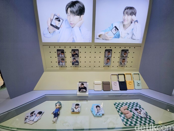 Pengunjung dapat menjajal case khusus BTS. Foto: Adi Fida Rahman/detikINET