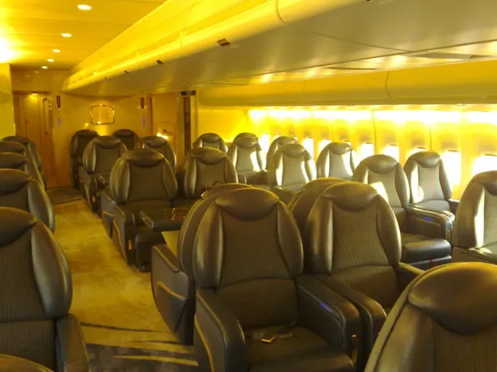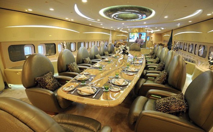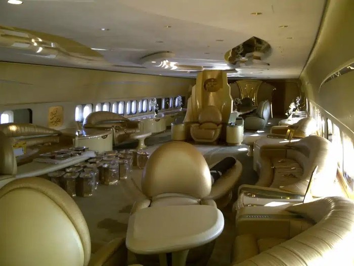 Pasalnya interior dalam pesawat dibuat super mewah. Pesawat ini memiliki salon yang luas, kamar utama dengan tempat tidur berukuran king, kamar mandi pribad yang memiliki shower. Foto: Albawaba