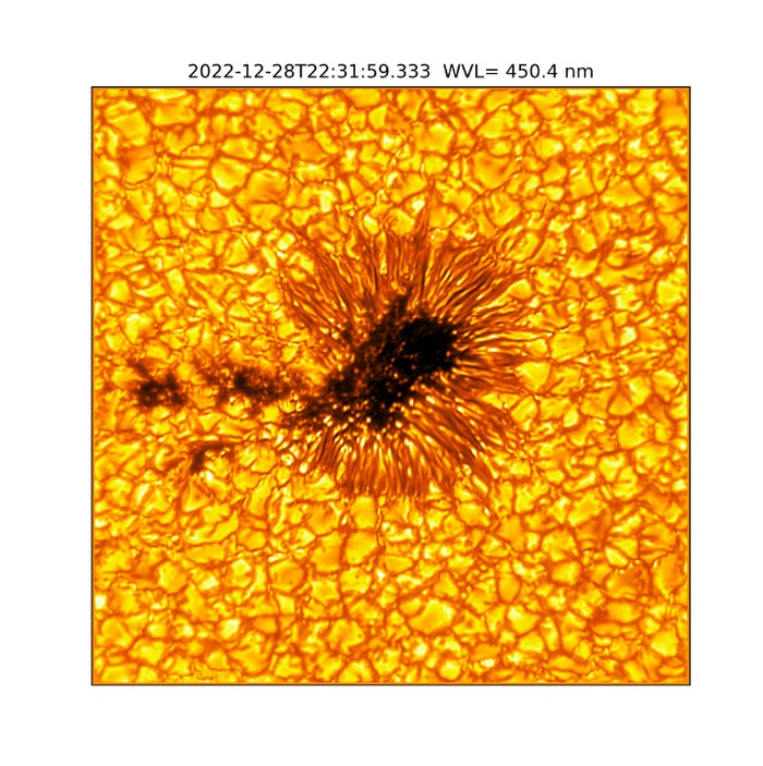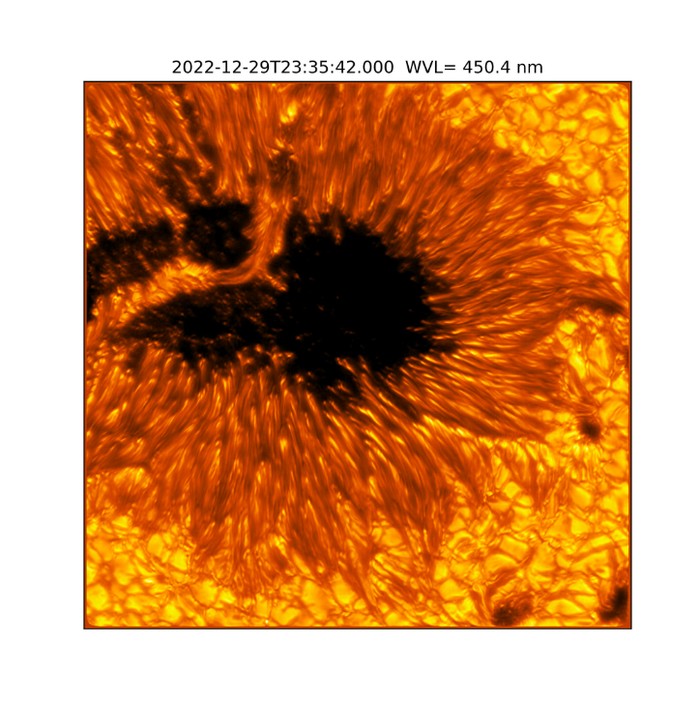 Salah satu gambar menarik yang dirilis DKIST pada Mei 2023 adalah bintik Matahari seukuran Bumi di permukaan Matahari yang sebenarnya merupakan lapisan atmosfer terendah yang disebut fotosfer. Foto: National Solar Observatory
