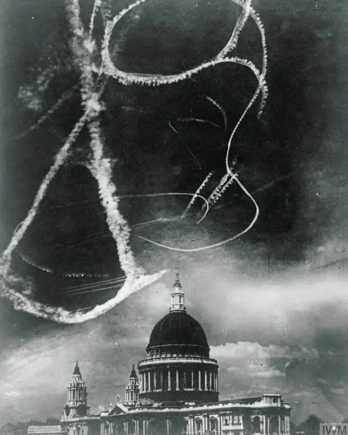 Pilot Jerman dan Inggris Terlibat Pertempuran Udara di Atas Katedral St Paul Selama Pertempuran Inggris, London, 1940, Perang Dunia II Foto: Boredpanda