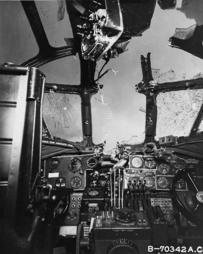 Kokpit Pembom B-24 Amerika Dari Skuadron Bom ke-392 Grup Bom ke-30, Dirusak Oleh Peluru Anti-Pesawat Jepang Pada 27 Januari 1945, Saat Serangan Untuk Membombardir Iwo Jima Foto: Boredpanda