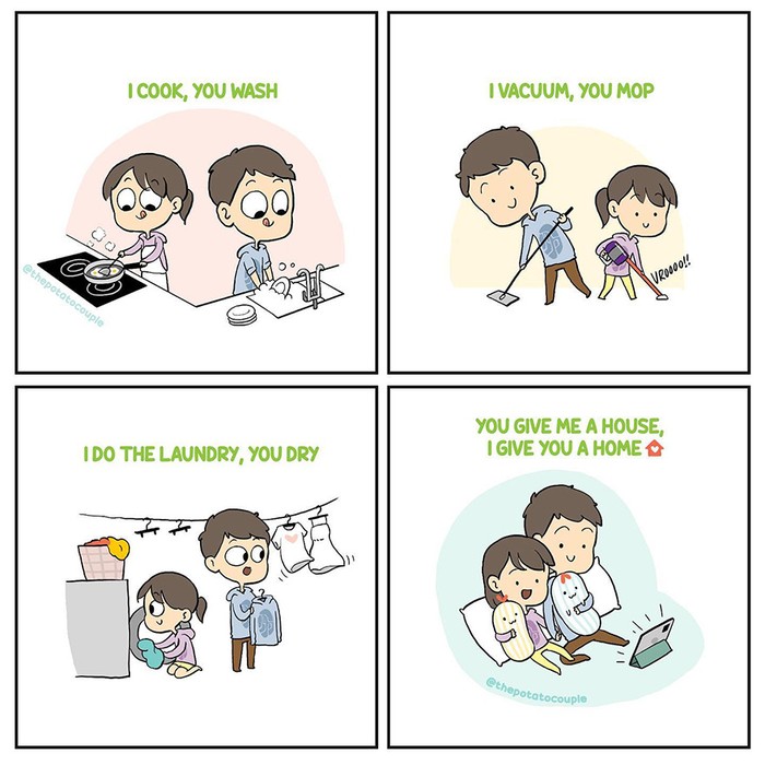 Kalau pekerjaan rumah dikerjakan bersama, semua akan terasaΒ ringan ya. Foto: (Dok. Bored Panda). Β