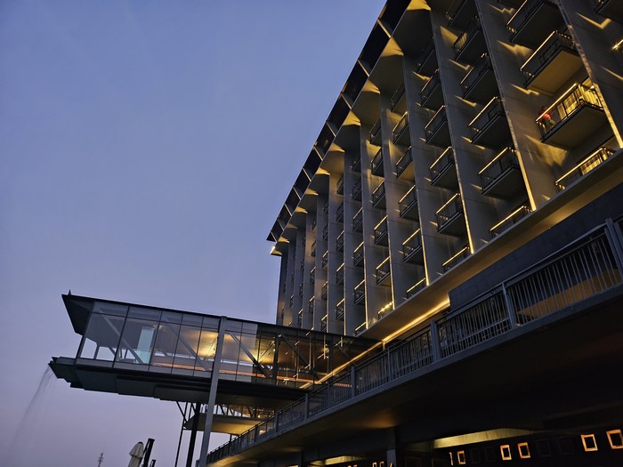 Kondisi foto di tengah langit senja. Detail lampu tertangkap dengan baik. Foto: Aisyah/detikINET