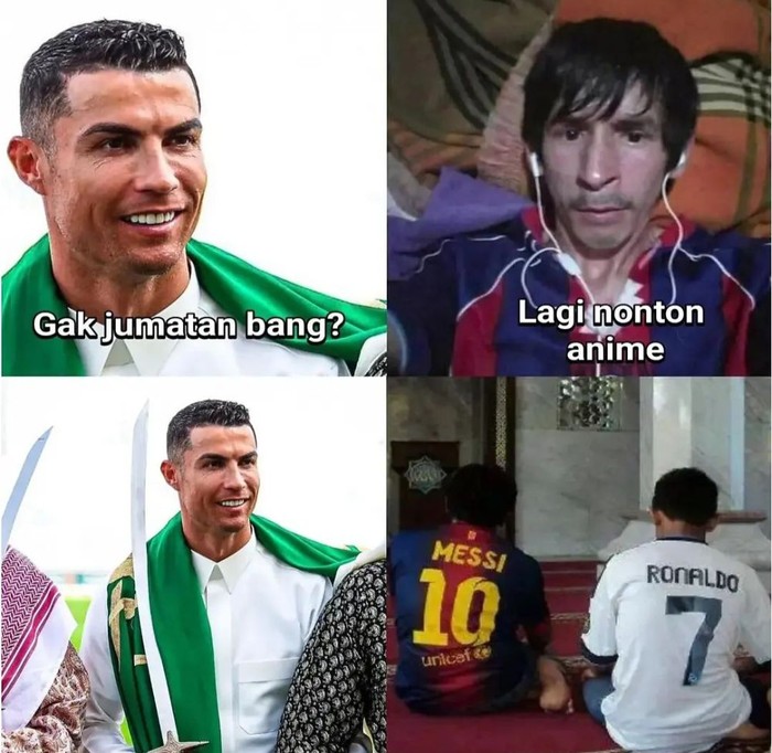 Messi dan Ronaldo pun akhirnya pergi ke masjid. Foto: Instagram/pkp.meme