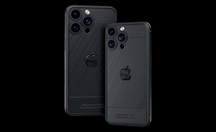 Berikutnya ada iPhone 15 Pro dan iPhone 15 Pro Max varian Ultra Black. Sedikit mirip seperti varian sebelumnya dengan bodi titanium, tapi edisi ini diberi sentuhan emas. Foto: Caviar