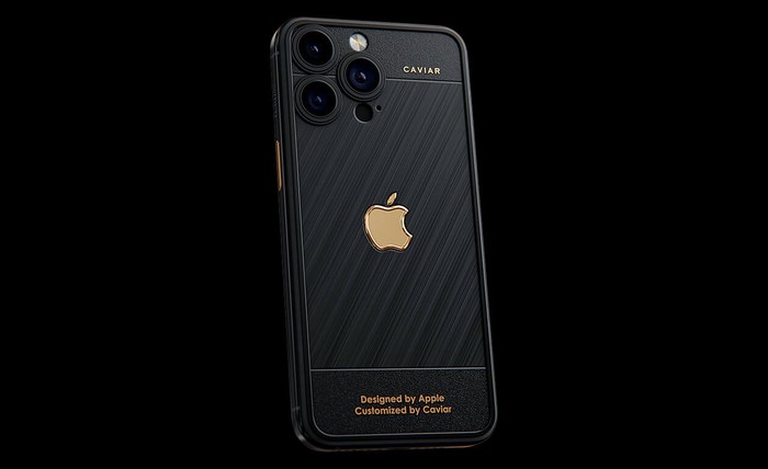 Logo Apple-nya terbuat dari emas 18K yang dilelehkan. Nuansa emas juga dapat ditemukan di tombol volume dan action button. Foto: Caviar