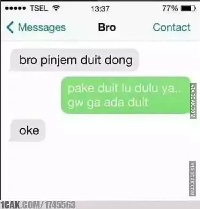 Sekali ngechat malah minjem duit. Foto: 1cak