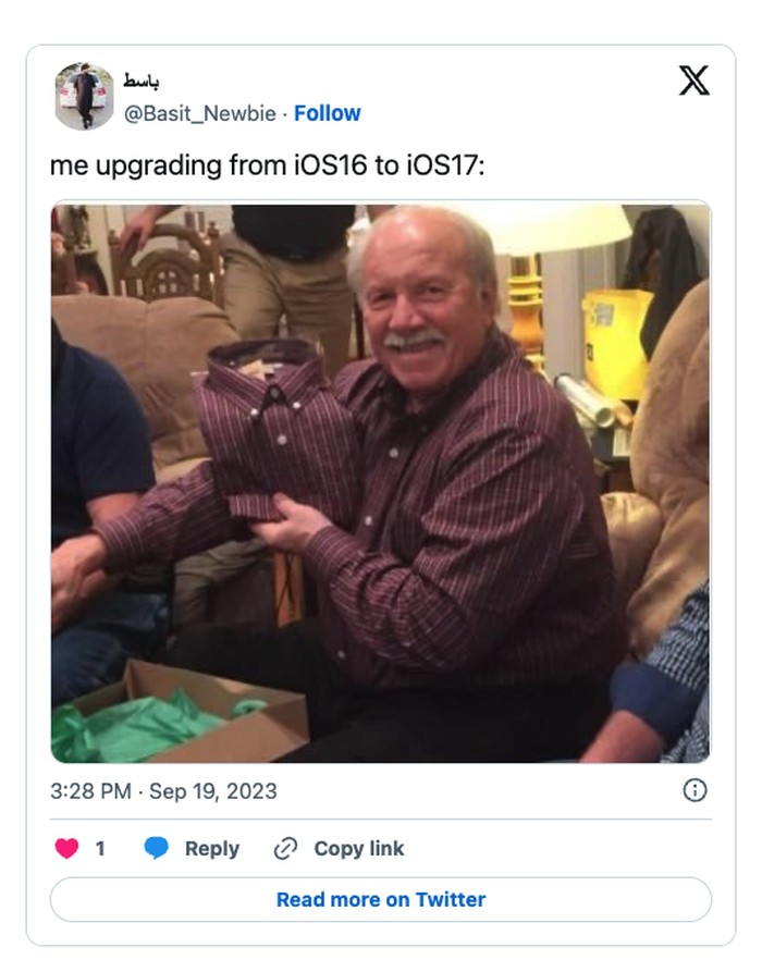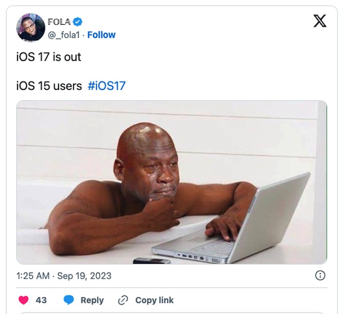 Ekspresi pengguna iOS 16 ketika kedatangan iOS 17. Foto: Twitter