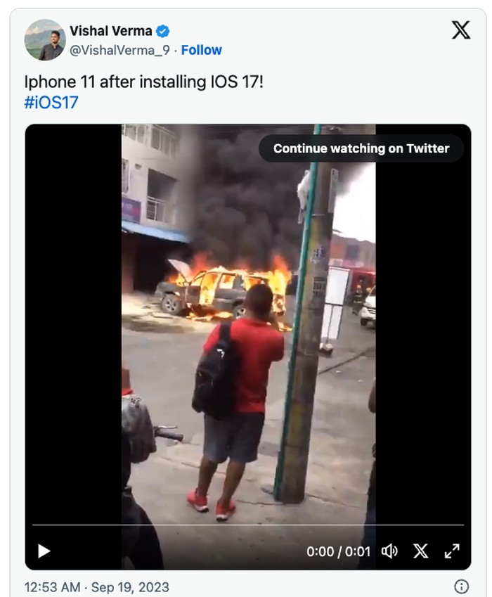 Pengguna iPhone 11 saat setelah install iOS 17. Foto: Twitter