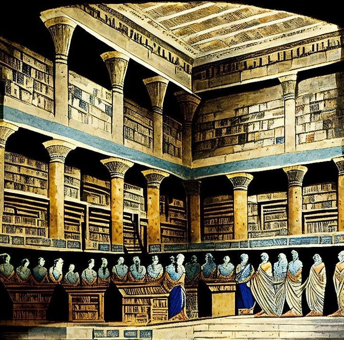 Perpustakaan Besar Alexandria, di Mesir yang didirikan sekitar abad ke-3 SM, merupakan perpustakaan terbesar di dunia kuno. Foto: twitter.com/UmarBzv