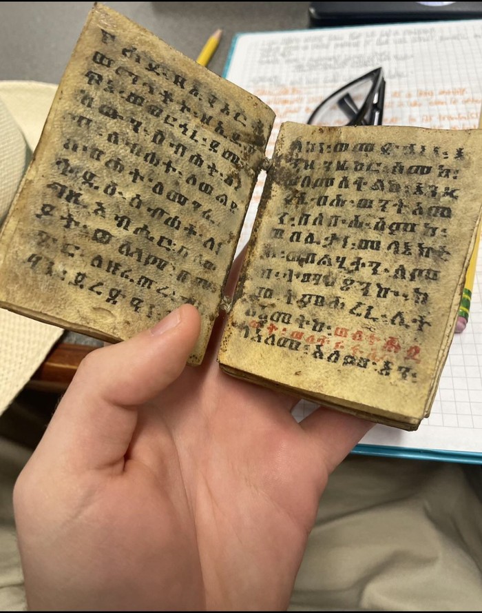 Buku berusia 800 tahun terbuat dari perkamen, bahasanya mirip Ge'ez berasal dari Etiopia dan Eritrea.Β Foto: twitter.com/UmarBzv