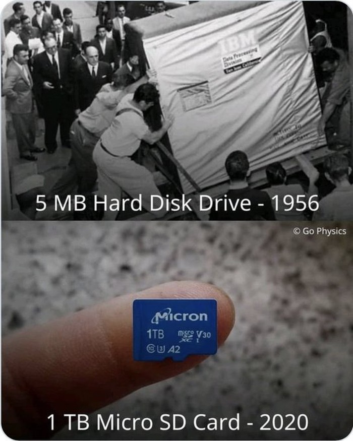 Hardisk 5MB pada tahun 1955 vs Hardisk 1TB sekarang.Β Foto: https://twitter.com/UmarBzv