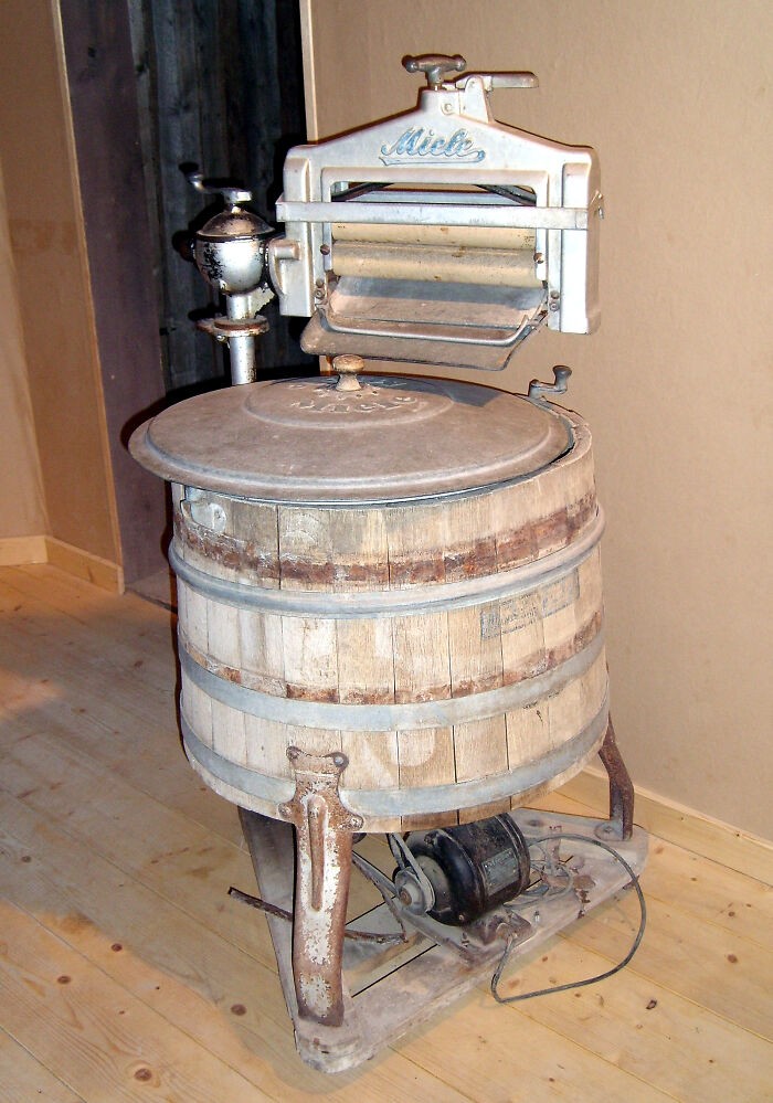 James King menemukan dan mematenkan mesin cuci pertama yang menggunakan drum berputar. Drum terisi sebagian dengan air. Foto: Bored Panda
