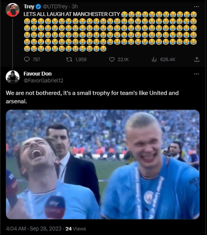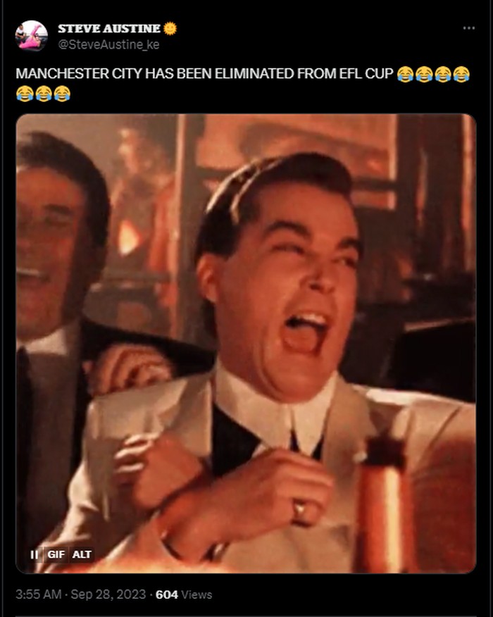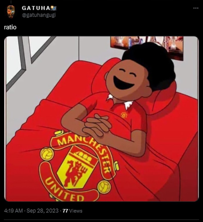 Bahagia banget kayaknya fans Machester United setelah Manchester City kalah. Foto: (Dok. Twitter).