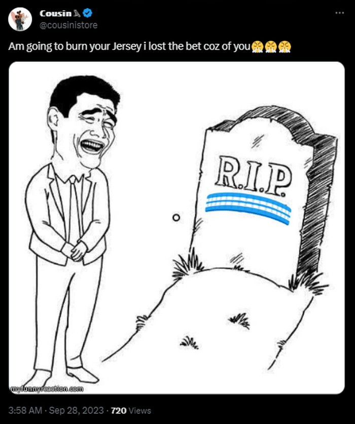Tuh kan sampai mau bakar jersey kesayangan. Sabar, Premier League masih memimpin kan? Foto: (Dok. Twitter).