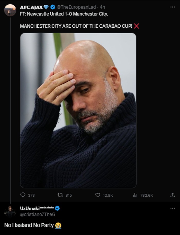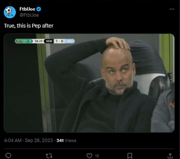 Banyak tertawa dengan hasil pertandingan Manchester City vs Newcastle. Apakah kekalahan ini akan menjadi snowball bagi mereka? Foto: (Dok. Twitter).