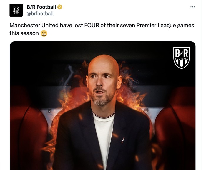 Erik Ten Hag pun berada dalam tekanan lantaran sudah 4 kali kalah di Liga Inggris. Foto: Twitter