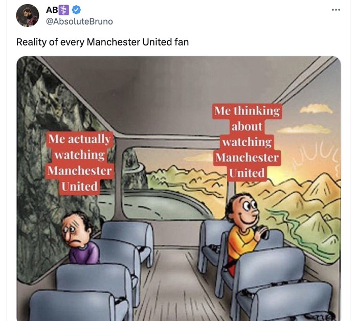 Fans MU dilema, ingin melihat laga MU tapi kalau dilihat malah kalah. Foto: Twitter