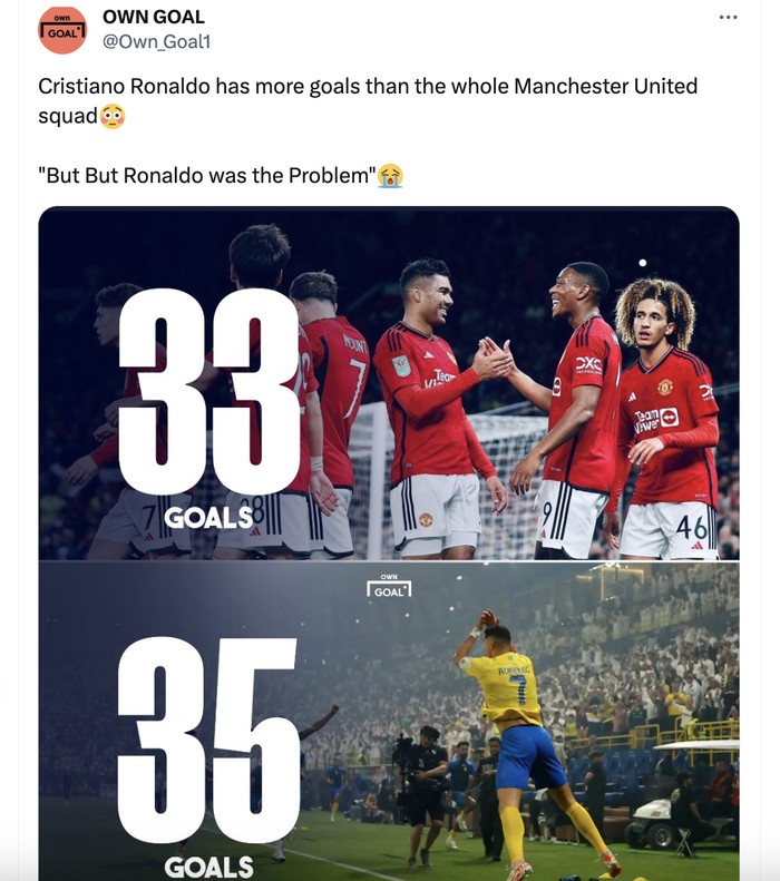 Ronaldo sudah mencetak fol lebih banyak dari MU. Jadi apa benar masalahnya di dia? Foto: Twitter