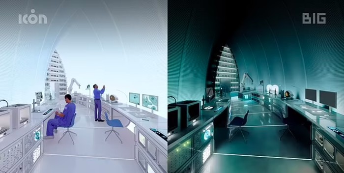 Rencananya, mereka akan meluncurkan printer 3D raksasa ke Bulan dan menggunakan beton khusus yang terbuat dari batu, pecahan mineral, dan debu Bulan untuk melapisi struktur di permukaan. Foto: ICON/BIG Bjarke Ingels Group