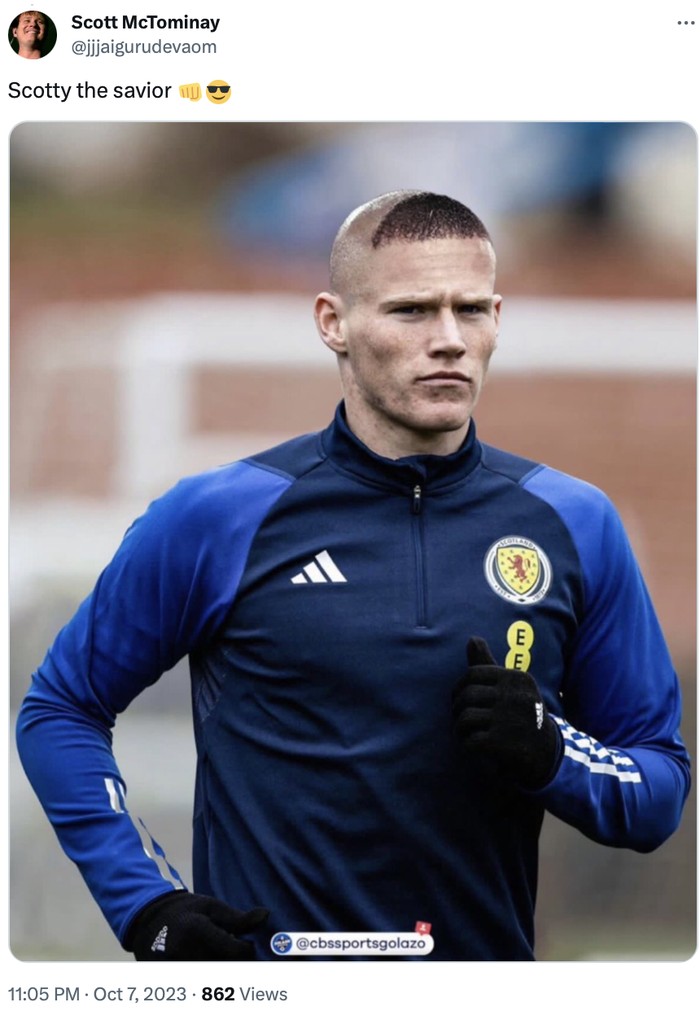 Selebrasi Scott McTominay, yang kata netizen tidak mungkin tidak menyukainya. Foto: Twitter