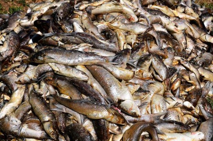 Foto tanggal 1 Juli 2019 ini menunjukkan ikan mati menumpuk di dekat laguna di tenggara Prancis. Gelombang panas yang berkepanjangan menurunkan kadar oksigen di laguna, menyebabkan kematian beberapa ton ikan. Foto: CBS News