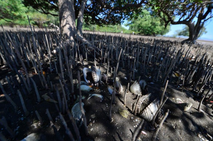 Sebuah pantai di Teluk Fonseca, Honduras, dipenuhi cangkang moluska mati. Pihak berwenang Honduras sedang menyelidiki peningkatan angka kematian yang jarang terjadi ini, dan penduduk setempat mencurigai perubahan iklim sebagai penyebab kematian besar-besaran pada kerang, kerang, dan moluska lainnya. Foto: CBS News
